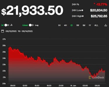 По состоянию на 08:000 по Киеву Bitcoin подешевел на 13,77% и торговался на уровне 21 933 доллара. При этом минимальная цена криптовалюты за последние 24 часа составляет 20 834 доллара, а максимальная – 25 792 долларов.