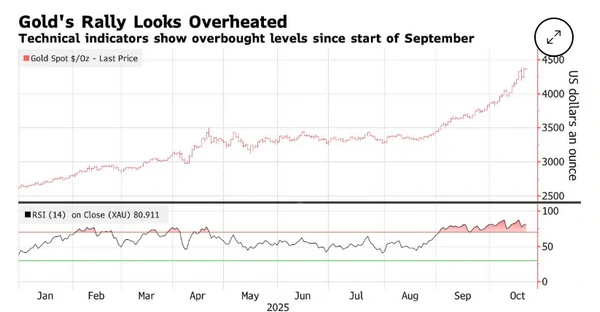 Во вторник цена золота снизилась на 0,8% - до 4322,93 доллара за унцию, после того как накануне достигла рекордного уровня 4381,52 доллара. Аналитики считают, что недавний рост мог быть слишком резким, а укрепление доллара сделало драгоценные металлы менее доступными для покупателей.
