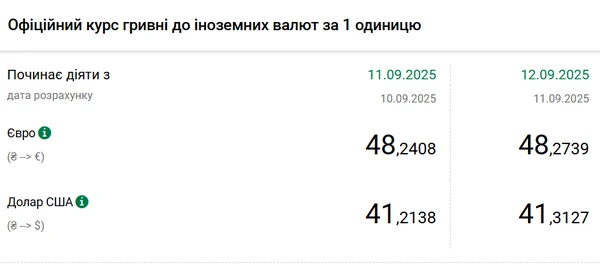 Официальный курс на 12 сентября 2025 года установлен на таком уровне: 41,3127 гривен за 1 доллар (+0,0989 грн).