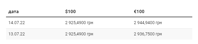Согласно официальному курсу Национального банка Украины, 14 июля курс гривны по отношению к евро упал на 8 копеек. По отношению к доллару национальная валюта остается без изменений.