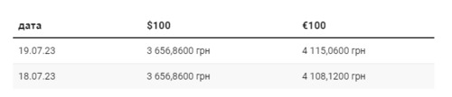 19 июля курс гривны по отношению к евро снизился на 7 коп