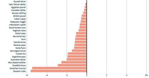 Национальная валюта Украины - гривна - вышла в лидеры рейтинга мировых валют по уровню падения с начала года. Об этом свидетельствуют данные рейтинга Thomson Reuters.В январе гривна упала на 5,5%. Больше в этом году девальвировал только российский рубль - 5,6%. На третьем месте идет шведская крона - 2,9%. В то же время, рейтинг растущих валют возглавил южноафриканский рэнд - 4,3%, в тройку также входят колумбийский песо - 3,6% и бразильский реал - 2,5%.