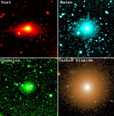 Изображения показывают, что общее распределение этих различных веществ имеет довольно сферическую форму, видимую в виде небольшого кругового гало вокруг ядра кометы. Распределение углеводородов, однако, было не совсем круговым, а немного более сплющенным.