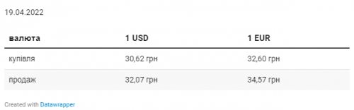 Во вторник, 19 апреля, средний курс покупки наличного доллара в украинских банках, по сравнению с понедельником, вырос на 11,2 коп. и составляет 30,62 грн. Курс продажи вырос 17,6 коп. – до 32,07 грн.