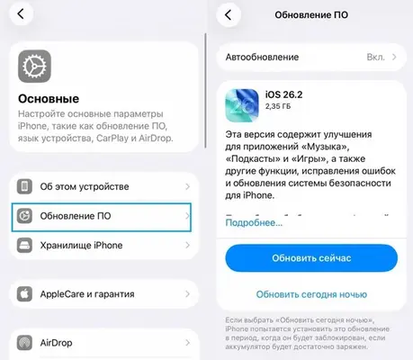 Во-первых, следует перейти в меню "Настройки". Затем необходимо выбрать подраздел "Основные" и нажать на "Обновление ПО". После этого начнется процесс загрузки и установки свежей версии операционной системы. Однако стоит помнить, что она доступна для тех устройств Apple iPhone, которые совместимы с iOS 26.