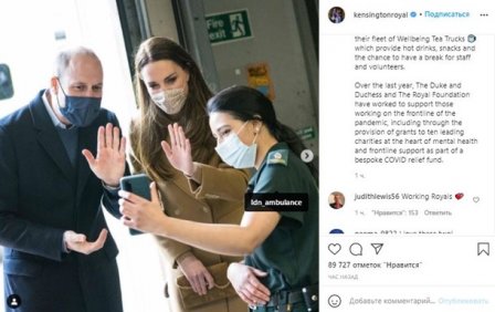 "Сегодня герцог и герцогиня поговорили с персоналом скорой помощи и парамедиками о своем опыте работы в один из самых сложных периодов работы в лондонской машине скорой помощи. Служба скорой помощи Лондона получила финансирование от фирмы, патронами которой являются герцог и герцогиня, чтобы они могли продолжать управлять своим парком оздоровительных чайных грузовиков, которые предоставляют горячие напитки, закуски и возможность сделать перерыв для персонала", - говорится в публикации на официальной странице герцога и герцогини Кембриджских в Instagram.