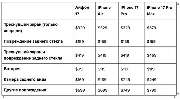 Отдельно стоит упомянуть новый iPhone Air с ультратонким корпусом, ремонт которого фактически приравнен к ремонту iPhone 17 Pro. Apple утверждает, что iPhone Air прочнее всех предыдущих моделей iPhone, и совсем скоро в этом смогу убедиться и его первые пользователи.