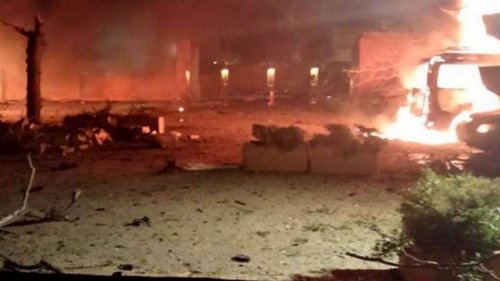 У отеля взорвался заминированный автомобиль. Есть погибшие и раненые. Пострадали авто, припаркованные рядом, и здание гостиницы.