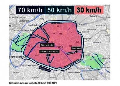 Теперь по парижским улицам можно передвигаться со скорость 30 км/ч. На отдельных магистралях разрешаются 50 км/ч и 70 км/ч.