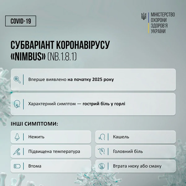 "Субвариант Nimbus (NB.1.8.1), как и субвариант Stratus (XFG), в настоящее время доминируют в мире. Это новые мутации штамма Омикрон. В целом в Украине подтверждено 38 случаев субварианта Stratus и один – Nimbus", - отметили в ведомстве.