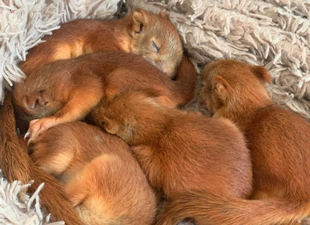 Бельчата выпали из гнезда и получили некоторые травмы, но вскоре восстановились, и теперь абсолютно здоровы.