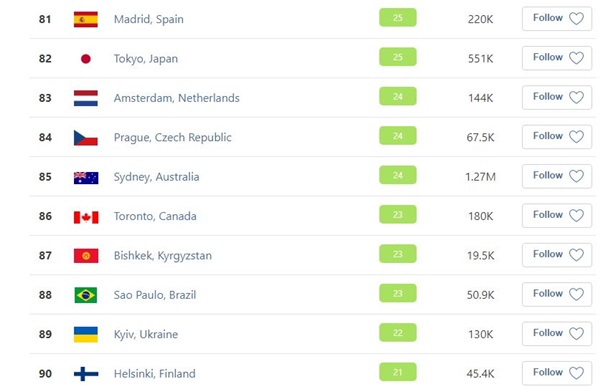 Слова метеоролога подтверждает мировой рейтинг по индексу качества воздуха QIAir. По последним данным, Киев "опустился" на 89 место с индексом 22, что характеризуется как "хороший" уровень. Тогда как на прошлой неделе Киев находился в топе рейтинга с индексом в 200-400."Качество атмосферного воздуха в Киеве на сегодняшний день близко к обычному для этого периода весны. Зависшие вещества – пыль и остатки горения – близки или несколько выше предельно допустимых концентраций. Содержание в воздухе диоксида серы, диоксида азота, оксида углерода и формальдегида близки к предельно допустимой концентрации и даже ниже",- заверил Прокопенко.